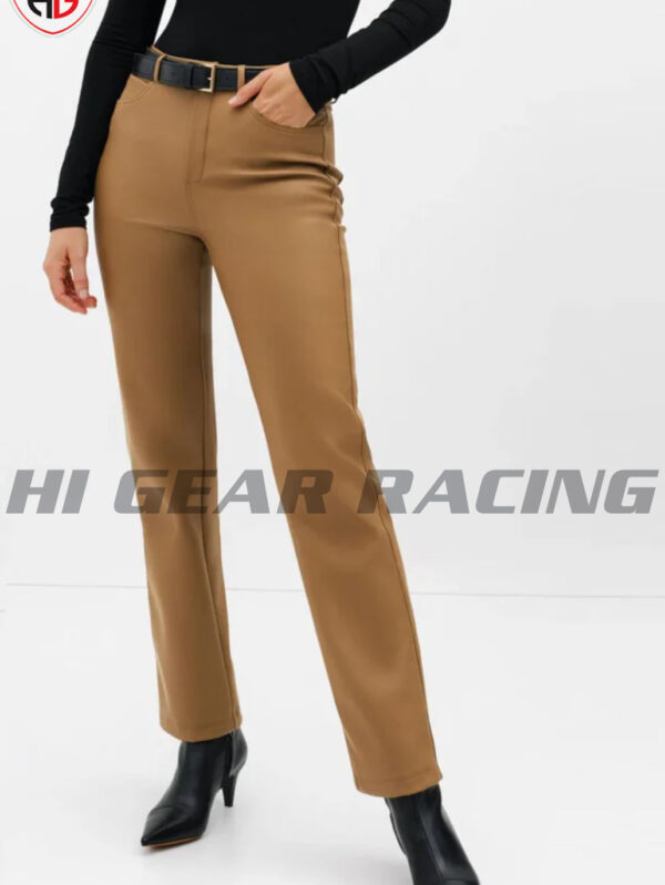Biker Style Leather Pants For Women In Brown